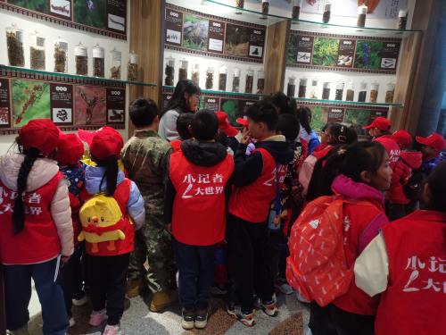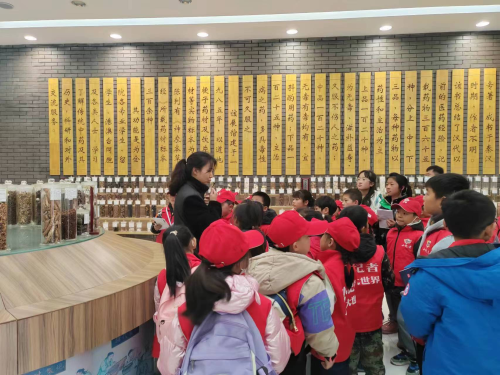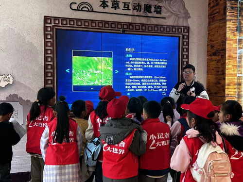 在《神农本草经标本》展厅,讲解员讲述何首乌成精的故事传说引起同学们的兴趣。